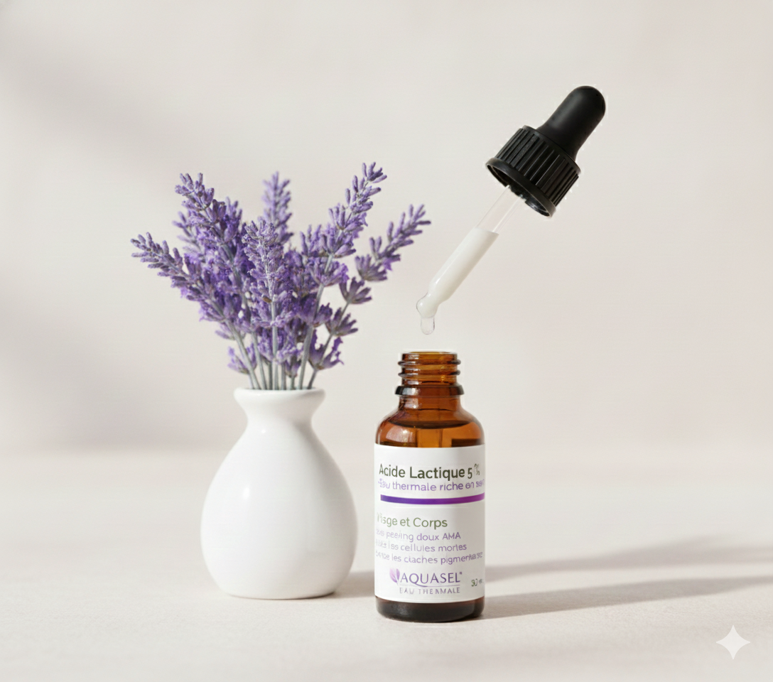 Offrez-vous un renouvellement cellulaire en douceur ! Le Sérum Peeling AquaSel® associe les propriétés exfoliantes de l’Acide Lactique (AHA) pour un grain de peau affiné et lumineux, aux vertus apaisantes de notre eau thermale. Il élimine les cellules mortes, réduit les imperfections et améliore la texture sans dessécher la peau. Idéal pour retrouver un teint frais et uniforme.