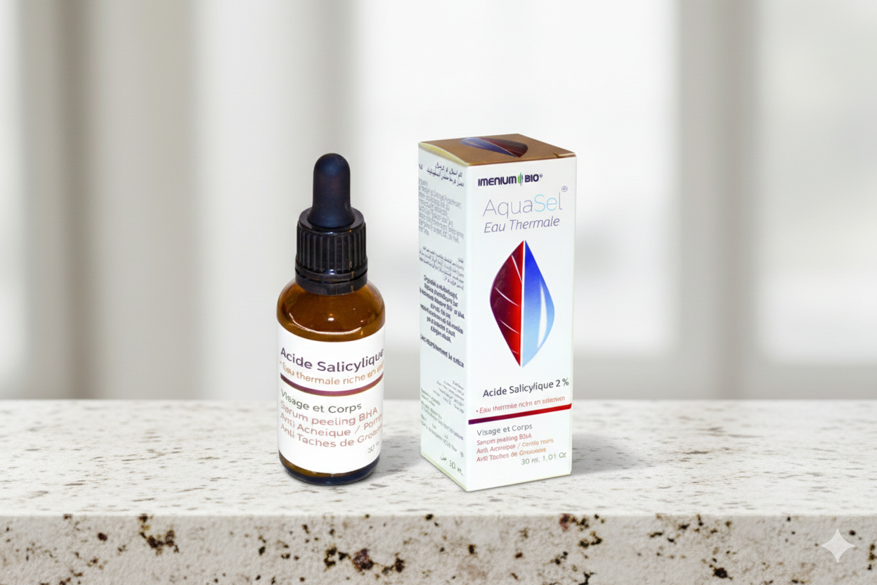 Le traitement choc pour les peaux sujettes aux imperfections et à l’acné. Ce sérum combine la force de l’Acide Salicylique (BHA) à 2% pour une désincrustation profonde des pores avec le confort apaisant de l’eau thermale AquaSel®. Il combat efficacement les points noirs, les boutons et les pores dilatés, offrant une peau plus nette, lisse et uniforme.